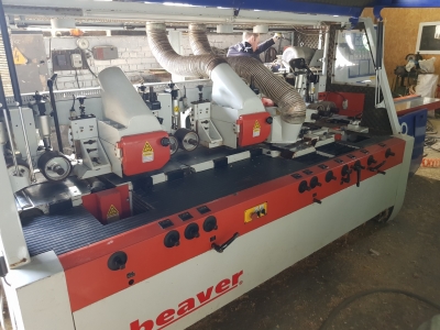 Все шпиндели имеют оградительные устройства, которые одновременно служат приемниками для стружки. Перед механизмом подачи установлены ограничитель толщины досок и когтевая защита.