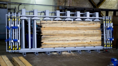 В исходном положении фронтальные прижимы находятся в крайнем левом или правом положении. Загрузка сухих, предварительно обработанных, заготовок выполняется вручную поштучно с последовательным нанесением клея или пакетом с помощью погрузчика либо другим механизированным способом. После загрузки осуществляется расстановка фронтальных прижимов для получения заданной конфигурации бруса или щита. Параметры сжатия в вертикальной плоскости задаются с панели управления. После включения питания вайма отрабатывает заданную программу прессования.