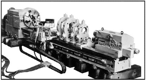Предназначен для черновой и чистовой обработки деталей типа валков, осей, барабанов, дисков из чугуна и стали Все валы, включая шпиндель, смонтированы на подшипниках качения. Переключение механических ступеней оборотов шпинделя кнопочное, управление дистанционное. Принудительная централизованная смазка передней бабки. Вращающийся центр встроен в пиноль задней бабки. Имеется прибор контроля осевых усилий задней бабки