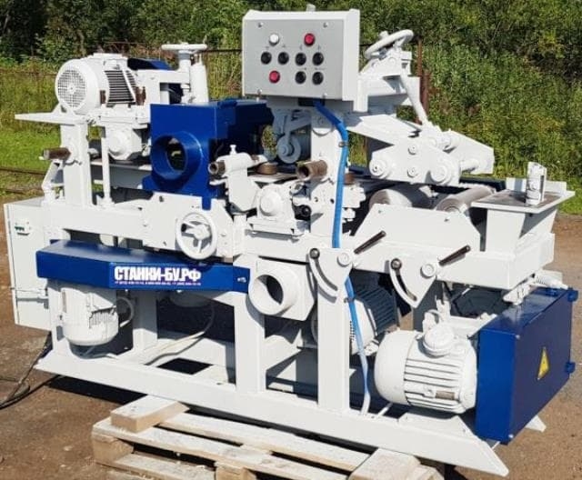 Предназначен для плоского и профильного продольного фрезерования заготовок из древесины лиственных и хвойных пород (брусков, бруса, досок с обычным сечением) с 4-х сторон за один проход. Применяется в производстве, высококачественных погонажных изделий (вагонки, евровагонки, полового шпунта, наличника, галтелей, плинтуса, штапика, багета и т.п.), деталей окон и дверей. Конструктивные особенности станка : Простая надежная конструкция и высокая ремонтопригодность. Основные части станка (шпиндельные узлы, подающие ролики) изготовлены из высококачественной износостойкой стали. Высокоскоростные шпиндели Механизм перемещения заготовки и конструкция шпинделей обеспечивают высокоточное прохождение обрабатываемого материала относительно шпинделей, благодаря чему достигается абсолютная параллельность всех плоскостей готовых изделий. Технические характеристики станка : Ширина обрабатываемой заготовки, мм 40-200 Толщина обрабатываемой заготовки, мм 80 Наименьшая длина обрабатываемой заготовки, мм 1000 Скорость подачи обрабатываемой заготовки, м/мин 6 Количество шпинделей, шт 4 Частота вращения шпинделей, об/мин 4500 Посадочный диаметр вала вертикальных шпинделей, мм 32 Диаметр вертикальных ножевых головок, мм 125-160 Диаметр горизонтальных ножевых головок, мм 125 Суммарная мощность электродвигателей, кВт 13,1 (17,1**) - мощность привода горизонтальных шпинделей, кВт 2 × 3,0 (2 × 4,0**) - мощность привода вертикальных шпинделей, кВт 2 × 3,0 (2 × 4,0**) - мощность привода подачи, кВт 1 × 1,1 Масса станка, нетто, кг 720 Габариты станка (Д х Ш х В), мм 1380 × 860 × 1340