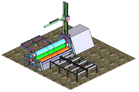 - Сразу после операции предподгиба, происходит скручивание цилиндра любого необходимого диаметра. Это означает, что рабочая зона станка минимальна, так как зона подачи листа находится лишь с одной стороны станка (см рис. Выше).