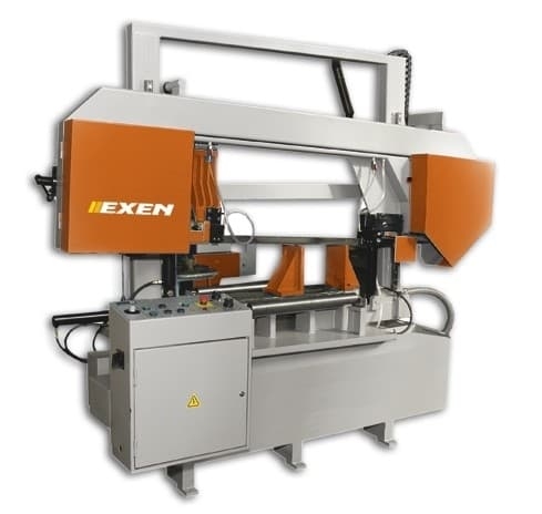 Станок ленточнопильный двухколонный 8Б800Д предназначен для резки крупногабаритных заготовок круглого (от 50 мм до 1050 мм), прямоугольного сечения, профильного проката из любых, в том числе и труднообрабатываемых материалов. Относительный коэффициент ж?сткости стоек станка не менее 0.28, позволяющий получать высокое качество реза при максимальных скоростях и производительности, могут работать в автоматическом или полуавтоматическом режимах. Конструкция станка предусматривает возможность установки поворотной или неподвижной рамы. Подача заготовок в зону резания осуществляется гидравлическими тисками или подающим роликом. При подаче материала тисками станок может работать поразличным программам. На всех моделях устанавливается ЧРП, датчик натяжения ленточного полотна, могут комплектоваться подающим и приемным рольгангами. Имеется возможность изготовления и поставки ЛПС с полной кабинетной защитой.