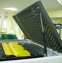 - Откидывающееся ограждение ножевого вала с патрубком эксгаустерной системы обеспечивает удобный доступ к режущему инструменту и удаление отходов обработки.