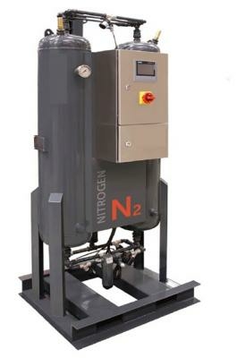 Адсорбционный генератор азота представляет собой две колонны заполненные углеродным молекулярным ситом. Этот адсорбент способен пропускать молекулы азота (размер 4,3 ангстрем), и поглащать молекулы кислорода (размер 3,9 ангстрем). В то время как в одной колонне происходит процесс адсорбции, вторая находится в режиме регенерации. Для регенерации используется небольшое кол-во азота, который вытесняет из адсорбента кислород.