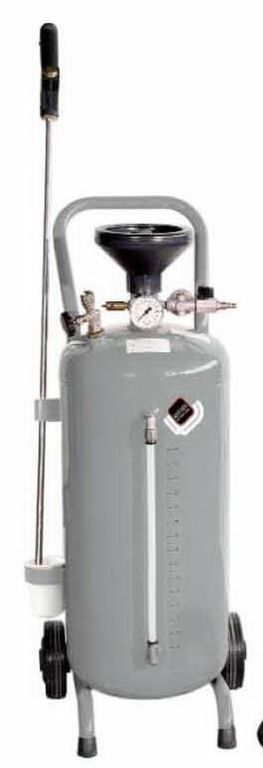 Вертикальный пеногенератор APAC 1942 подключается к компрессору или пневматической линии для создания рабочего давления внутри. Аппарат позволяет наносить моющие и дезинфицирующие растворы в виде пены на любые поверхности и труднодоступные участки. Корпус устройства изготовлен из стали и покрыт порошковой краской, не боится коррозии. Пеногенератор имеет встроенную воронку для залива моющего средства, шкалу для показания уровня жидкости, пистолет из нержавеющей стали с соплом и шлангом длиной 8 м. Для удобства перемещения установки она оснащена колесами и ручкой.