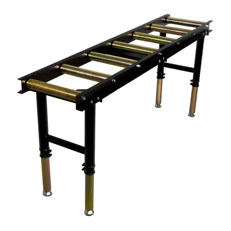 Рольганг AURA RS-1000 представляет собой жесткую, устойчивую сборную конструкцию в виде стола, оснащённую вращающимися на подшипниках стальными роликами Ø 60 мм, на которых размещается заготовка. Ролики обеспечивают лёгкое перемещение заготовки вдоль стола. Регулируемые опоры рольганга позволяют установить плоскость стола на высоте от 600 до 1000 мм от пола. Компания AURA TOOLS предлагает два вида неприводных рольгангов с длиной секций 1 и 2 метра, которые можно установить последовательно, тем самым получив подвижный стол необходимой длины. Максимальная нагрузка на всю 2-х метровую секцию (7 роликов) составляет 800 кг.