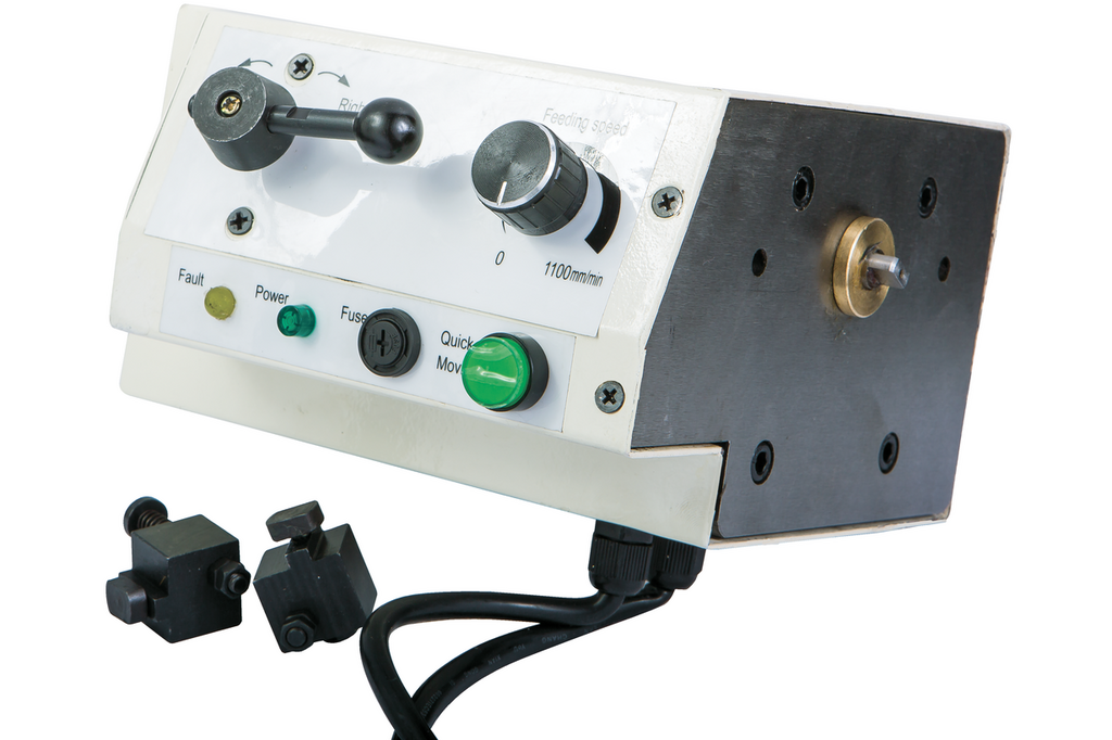 Это оборудование идеально подходит для использования в производстве металлических и деревянных изделий, а также в сфере обработки пластика. Оно подойдет как крупным производственным предприятиям, так и небольшим мастерским. Автоматическая подача по оси Х представляет собой один из основных вариантов оснастки фрезерно-сверлильного станка модели JMD-3T, выпускаемого компанией JET. Устройство монтируется в торцевой части рабочего стола с левой стороны. Конструкция снабжена необходимыми рычагами и кнопками управления. Автоматическая подача обеспечивает передвижение рабочего стола по оси Х в автоматическом режиме, сокращая время, отведенное на обработку заготовок. Устройство имеет режим автоматической быстрой подачи рабочего стола с обрабатываемой деталью в рабочую зону станка.| Габариты | |