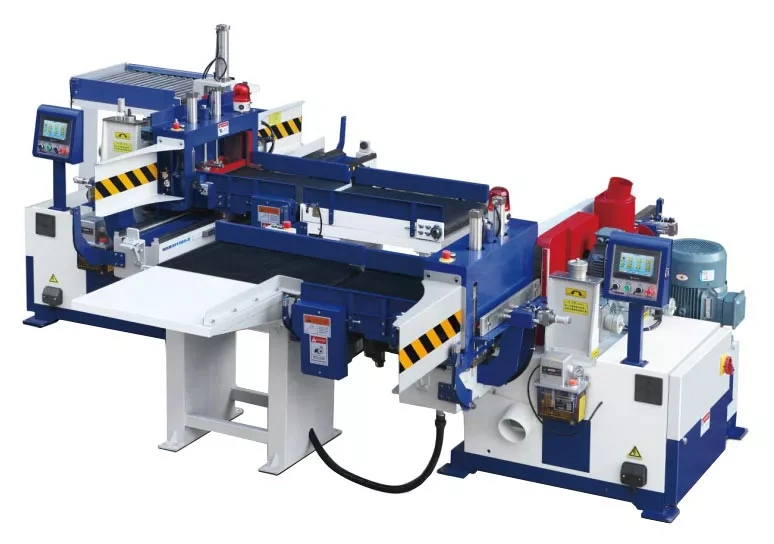 Состоит из 2-х шипорезных станков с шириной каретки 450 мм или 590 мм и автоматических конвейеров для перемещения ламелей. По желанию заказчика станки можно оснастить серводвигателями. В зависимости от этого и параметров заготовок на линии можно достигать производительности до 5 циклов в минуту. |