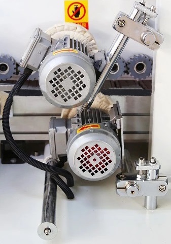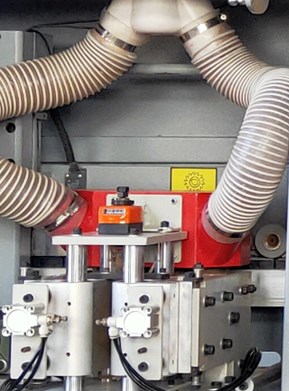 УЗЕЛ ПРЕДВАРИТЕЛЬНОГО ФРЕЗЕРОВАНИЯ Узел прифуговки состоит из двух высокочастотных двигателей 12 000 об/мин, 2 х 1,1 кВт . Отвечает за удаление сколов после раскроя и ступеньки от подрезной пилы, что обеспечивает идеальную геометрию заготовки для высококачественного приклеивания кромки. Настройка узла производится с помощью счетчиков, что обеспечивает точность и простоту перенастройки. Возможность отключения узла и работа без него. Защитный кожух с аспирацией исключает попадание отходов фрезерования в зону наклейки кромки. |