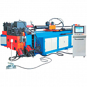 Подача трубы, поворот в пространстве осуществляется с помощью сервоприводов. Контроль гибочной операции производится при помощи гидравлического привода с функцией понижения скорости перед окончанием гиба для обеспечения высокой точности гибки. Сегментный кулачковый цанговый зажим обеспечивает надежную фиксацию трубы в подающей каретке. Привод отвода дорна позволяет получать изделия с минимальной овальностью. Станки оснащаются автоматической системой смазки дорна, а также приводом подачи хвостового прижима, который обеспечивает проскальзывание трубы относительно зажимов оснастки. Мощная станина обеспечивает жесткость конструкции и точность взаимодействия узлов. Привод отвода дорна позволяет получать изделия с минимальной овальностью. Полуавтоматическая централизованная система смазки ответственных узлов станка обеспечивает удобство работы и обслуживание станка.