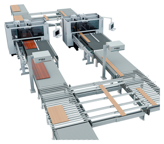 | Загрузка и выгрузка деталей Деталь загружается горизонтально и перемещается автоматически по специальному роликовому столу. На выходе станка предусмотрен автоматический конвейер разгрузки. На входе в зону обработки станка деталь базируется специальным прижимом с ЧПУ, который измеряет размеры детали и сравнивает с заданными. Если деталь не соответствует заданному размеру, то она отправляется на разгрузочный конвейер без обработки, чтобы не останавливать автоматическую линию. |