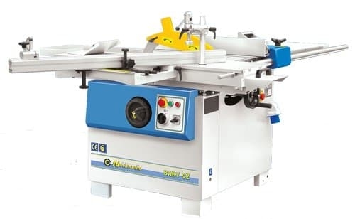 Пильный механизм который имеет наклон 90?-45?, включает в себя два режущих узла: основной и подрезной (опция). Подрезная пила имеет попутное вращения относительно подачи заготовки и позволяет, за счет предварительного реза, раскраивать ламинированные листы ДСП без появления сколов. Для точной настройки ширины пиления предусмотрено специальное устройство. Кратковременно в режиме S6, двигатель 4,0 кВт достигает мощности 5,5кВт.