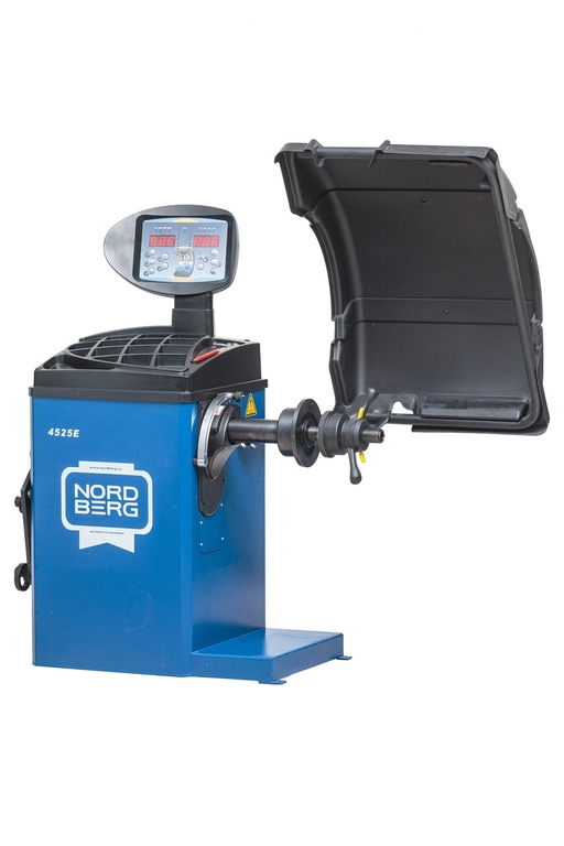 Чистота рабочего места Специальный кожух балансировочного станка NORDBERG 4525E успешно препятствует вылету частиц грязи из шины в процессе вращения колеса. |