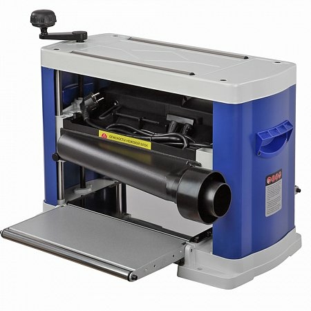 Модель оборудована индикатором строгания, отображающим высоту снятия за один проход, и рукояткой регулировки, перемещающей рабочую платформу.