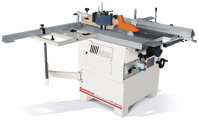 Комбинированный 5-функциональный станок minimax JET C30 genius MI07.01.75-1 широко используется в деревообрабатывающей промышленности благодаря своим широким возможностям, безопасности эксплуатации и простоте управления. Данное оборудование выполняет такие операции, как фугование, рейсмусование, форматирование, распил и фрезерование. Конструкция предусматривает наличие трех независимых двигателей для стабильной работы каждого узла станка. Также каждый из узлов оснащается своей системой пылеотведения для наиболее эффективной и чистой работы. В случае перегрузки модель автоматически отключается, благодаря чему внутренние элементы подвергаются минимально возможному износу и служат долгий период времени. Фуговальный стол легко откидывается, что делает рейсмусование удобным. Все столы изготавливаются из чугунного литья и отличаются высокой прочностью. Материалами каретки и упоров служит алюминий, что облегчает их перемещение и фиксацию. Выходная мощность агрегата составляет 1500 Вт.