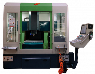 Трехкоординатный вертикальный фрезерный станок повышенной точности (до 5 микрон) со шпинделем повышенной мощности для обработки титана и нержавеющей стали. Размер стола 500*700, ходом по оси Z- 300 мм, со сменой инструмента (12 позиций), и c русскоязычной стойкой ЧПУ Clever (эмулирует Fanuc, HEIDENHAIN и др., с функцией Lookahead без ограничения по кадрам).