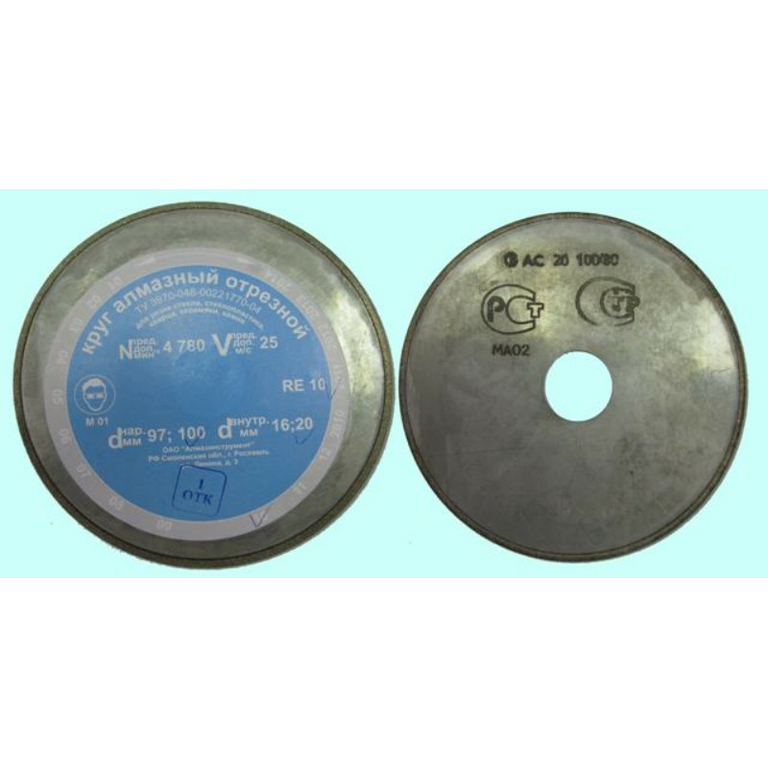 Предназначены для резки стекла, стеклопластика, кварца, керамики, природного камня. Изготовлены по ТУ 3970-048-00221770-04 -АОК -алмазный отрезной круг -250х32х1,2мм -диаметр круга, посадочный диаметр,толщина (ширины реза) -АС20 -марка шлифпорошка из синтетических алмазов, зерна которых представлены агрегатами и сростками (не более 40%), а также удлиненными кристалами. -160/125 -зернистость шлифпорошка.ВАРИАНТЫ ДОСТАВКИ:
