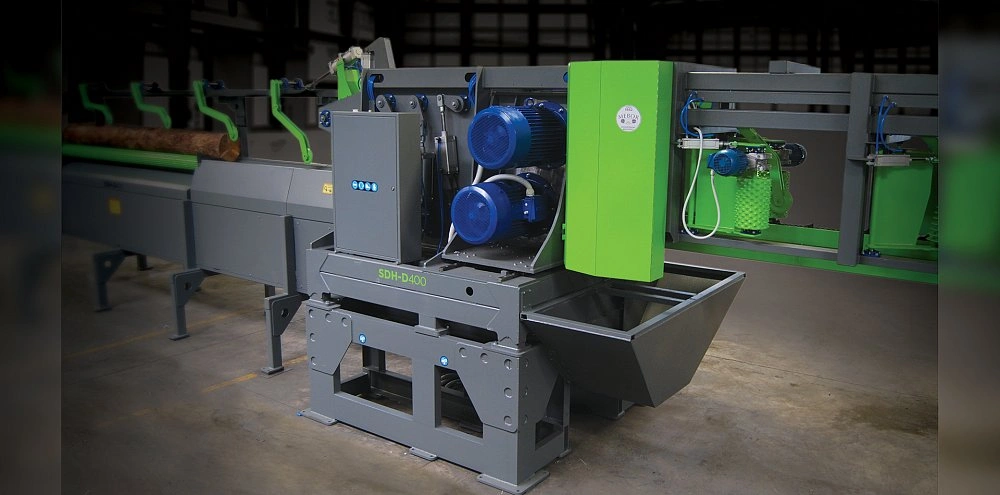 Бревнопильный станок SDH-D-340 или SDH-D-400 – тяжелый станок индустриального класса с производительностью до 300м3/смену. Благодаря возможности регулировки центрального бруса увеличивается полезный выход. Станок имеет систему оптимизации, может быть укомплектован фрезерными блоками и сканером MEBOR для автоматического позиционирования бревен и лучшего полезного выхода и производительности