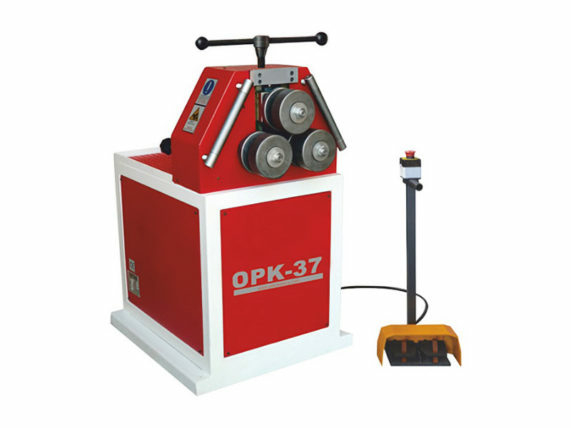 Электромеханический профилегиб OSTAS OPK-37 предназначен для гибки различного сортового проката в дуги и кольца с различным радиусом. Способность работы с тем или иным видом проката определяется рабочим инструментом профилегибочного станка – гибочными роликами. В стандартной комплектации со станком идут ролики, которые подходят для гибки профильных труб разных размеров, гибки полосы плашмя и на ребро, а также для некоторых размеров уголков, швеллеров, тавров и т.п. То есть со станком идут ролики способные работать с несколькими видами профилей, для остальных видов и размеров сортового проката станок может быть укомплектован дополнительными роликами, например, для круглой трубы.