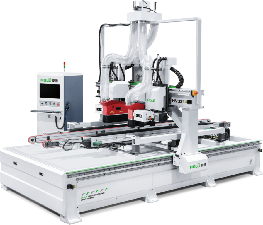 Модель HOLD HV321 применяется на средних и крупных дверных предприятиях для высокоскоростного форматирования дверных полотен.
