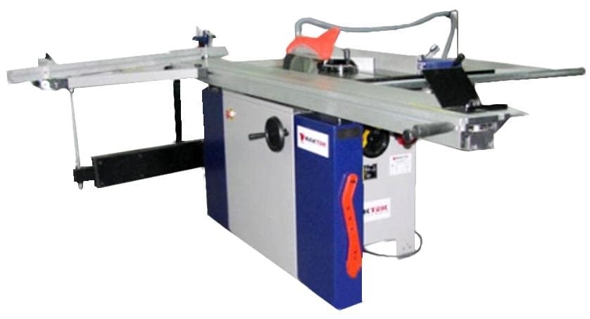 Пила форматно-раскроечного станка установлена на шпинделе, который имеет возможность настройки поворота относительно рабочего стола. Стальной, удобный корпус станка со столом из литого чугуна и с передвижным алюминиевым столом, изготовленным из профильного алюминия повышенной прочности – стол станка является очень прочным и устойчив к искажениям.