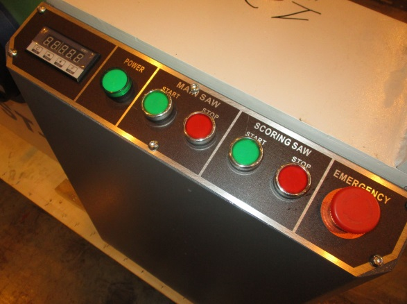 ПУЛЬТ УПРАВЛЕНИЯ Кнопки запуска основного и подрезного узлов располагаются на лицевой части панели управления, которая также, для удобства оператора, дополнительно оснащена цифровой индикацией, отображающей текущее фактическое значение наклона пильного блока. |