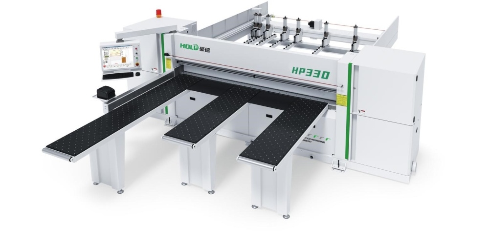 Пильный центр с ЧПУ HOLD HP330 предназначен для точного и быстрого пакетного раскроя плитных материалов (МДФ, ДВП, ДСП, ЛДСП и др.) с предварительным подрезом нижней кромки, для предупреждения сколов во время раскроя.