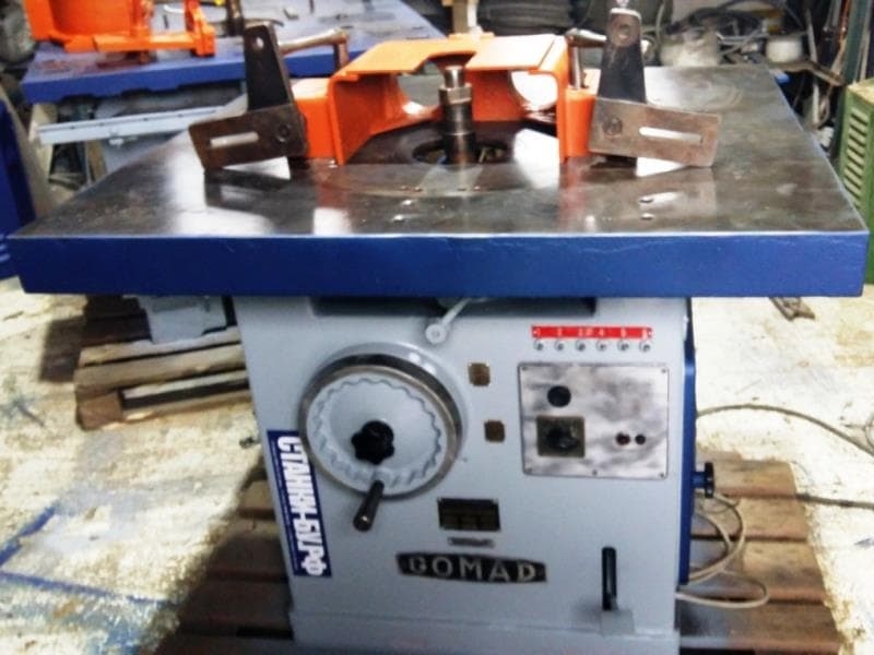 Перечень выполненных работПроведенаполная разборка и дефектация всех узлов фрезерного станкаСобранаНовая электрическая схема управления станком на современных комплектующих с заменой кнопок управления и индикацииЗамененыподшипники электродвигателя привода фрезерного вала (2шт.)подшипники фрезерного вала (3 шт.)На склад поступил станок фрезерный GOMAD б у (производства Польша). Конструктивно фрезерный станок по дереву состоит из станины с массивным столом. На нем установлен шпиндель с режущим инструментом. Высота рабочего вала регулируется при помощи маховика. Фреза совершает вращательное движение, заготовка поступательно перемещается относительно оси шпинделя. Подача может быть ручной или автоматической. Выход режущего края фрезы регулируется, это позволяет контролировать глубину сбора. Наибольшая толщина обрабатываемой заготовки, мм150Размеры фрезерного стола (длина х ширина), мм1000х1015Наибольшее вертикальное перемещение шпинделя, мм130Диаметр шпиндельной оправки, мм32Наибольший диаметр режущего инструмента, мм250Частота вращения шпинделя, об/мин3000;4500;6000;9000Мощность электродвигателя, кВт4/4,75Габариты, мм1580х1575х1300Масса Gomad, кг630