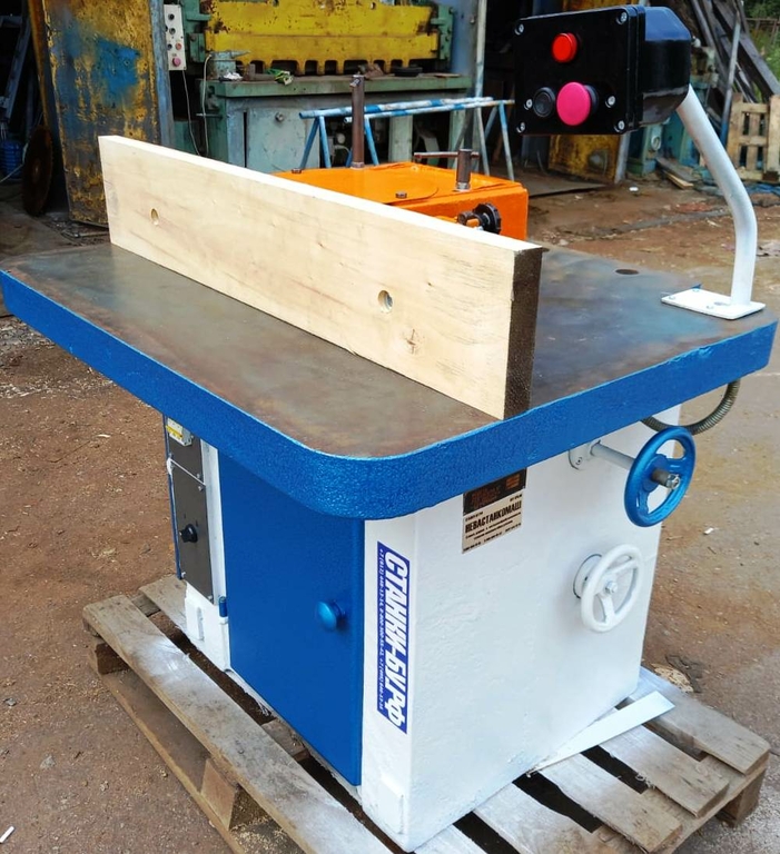 Станок собран на цельнолитой виброустойчивой чугунной станине, внутри которой установлен высокоскоростной шпиндельный узел с механизмом подъёма и приводом от двухскоростного электродвигателя. На станине установлен литой чугунный стол . На столе крепятся верхняя опора шпинделя, ограждение фрезы с регулируемыми направляющими линейками и патрубком для стружкоотсоса.