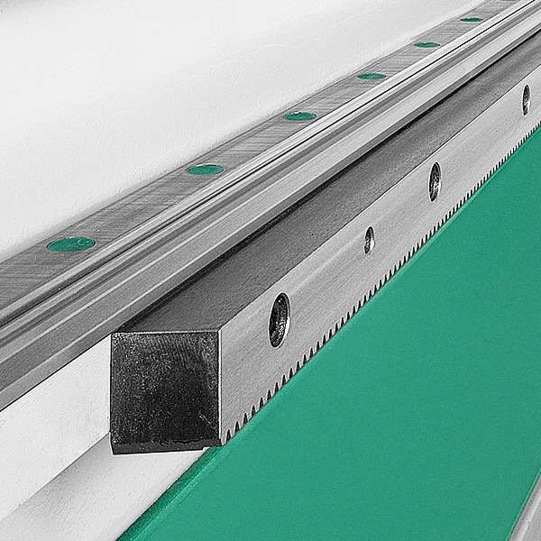 Косозубая рейка. Передача по осям X и Y станка осуществляется косозубой зубчатой рейкой. |