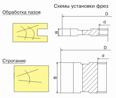 Назначение: фрезы предназначены для обработки прямоугольных пазов и для строгания при фрезеровании вдоль волокон в деталях из древесины твердых и мягких пород на универсальных фрезерных и четырехсторонних станках.