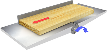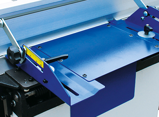 Столы откидываются поочередно, и базируются на специальных упорах, которые предотвращают повреждение станины станка. Принимающий фуговальный стол снабжен механизмом стопорения. |