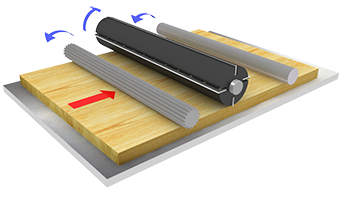 Трехножевой строгальный вал, обеспечивает идеальное качество строгания, снабжен когтевой защитой и металлическим подающим валом. Строгальные и падающие валы закреплены в массивном стальном корпусе, который эффективно гасит ударные нагрузки, возникающие в процессе работы. |