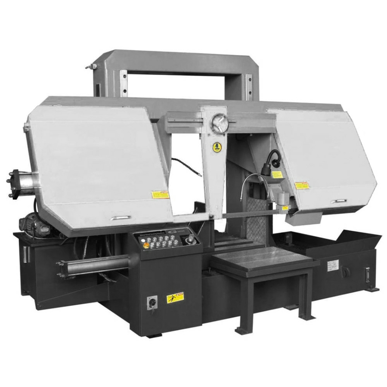 является гидравлическим ленточнопильным станком, колонного двухстоечного типа. Полуавтоматический ленточнопильный станок, предназначен для пиления труб и сплошных заготовок, максимальным диаметром круга 650 мм и квадратной заготовки 650x650 мм под углом 90°. Двухстоечные ленточнопильные станки имеют 2 вертикальные стойки (колонны) по которым перемещается горизонтальная пильная рама, образуя жёсткий замкнутый контур с высокой стабильностью реза. Пильная рама, представляет собой стальную сварную конструкцию. На полуавтоматических станках возможна работа как в ручном режиме, когда каждая операция выполняется вручную посредством нажатия соответствующей кнопки, так и в автоматическом режиме, когда станок выполняет весь цикл резания (зажим заготовки – запуск пилы – опускание рамы – остановка пилы – подъем рамы – отжим тисков). В последнем случае оператор должен лишь обеспечить подачу заготовок и нажатие кнопки «Пуск».