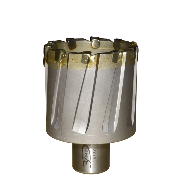 Корончатое сверло с твердосплавными зубьями подходит для работы по стали, нержавеющей стали, цветным металлам и чугуну. Благодаря конструкции хвостовика W32 обеспечивается надежная фиксация инструмента в держателе магнитных и стационарных станков.