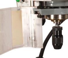 Безопасность Откидной экран-ограждение зажимного патрона из оргстекла гарантирует защиту оператора от попадания искр и мелких частиц без ограничения обзора выполняемых работ. |