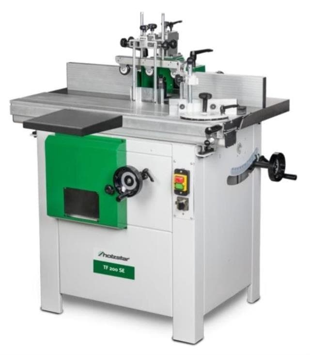 Фрезерный станок по дереву Holzstar TF 200 SE — станок с чугунным основным и алюминиевым подвижным столами, наклоняемым шпинделем и фрезерным упором с тонкой настройкой.