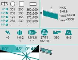 | Наибольший размер отрезаемой заготовки прямоугольного сечения (при угле реза 0 град.), мм. | 350 х 200 |