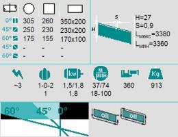 | Наибольший размер отрезаемой заготовки прямоугольного сечения (при угле реза 0 град.), мм. | 350 х 200 |