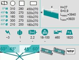 | Наибольший размер отрезаемой заготовки прямоугольного сечения (при угле реза 0 град.), мм. | 450 х 270 |