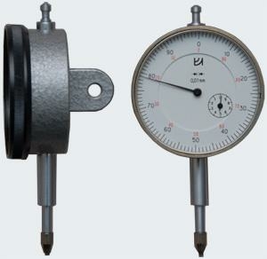 Цена деления 0.01 мм. Предназначены для абсолютных и относительных измерений линейных размеров, контроля отклонений от заданной геометрической формы и взаимного расположения поверхностей. Индикаторы с диапазоном измерения 0 - 2 мм выпускаются в двух исполнениях: ИЧ - с перемещением измерительного стержня параллельно шкале; ИТ - с перемещением измерительного стержня перпендикулярно шкале. Крепят индикаторы либо за присоединительную гильзу диаметром 8h7, либо за ушко толщиной 5 мм с присоединительным отверстием диаметром 5 мм. Наличие поворотного измерительного рычага, малые габариты и незначительное измерительное усилие позволяют использовать прибор в трудно доступных местах, а также в случаях требующих малого измерительного усилия.