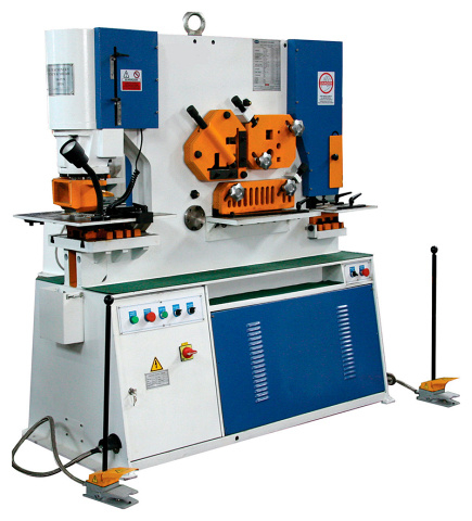 Гидравлический пресс-ножницы IRONMAC HKM 45 предназначен для пробивки отверстий, рубки уголка, полосы, прутка, и гибки листового и полосового материала. Станок состоит из следующих основных узлов: станины, привода, кулисного механизма, дыропробивного устройства, упора сортовой секции, упора листовой секции, механизма включения кулисы, механизма включения ползуна.