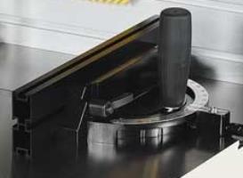 Позиционирование детали под углом Специальный упор перемещается по Т-образному пазу стола и позволяет располагать заготовку под углом. |