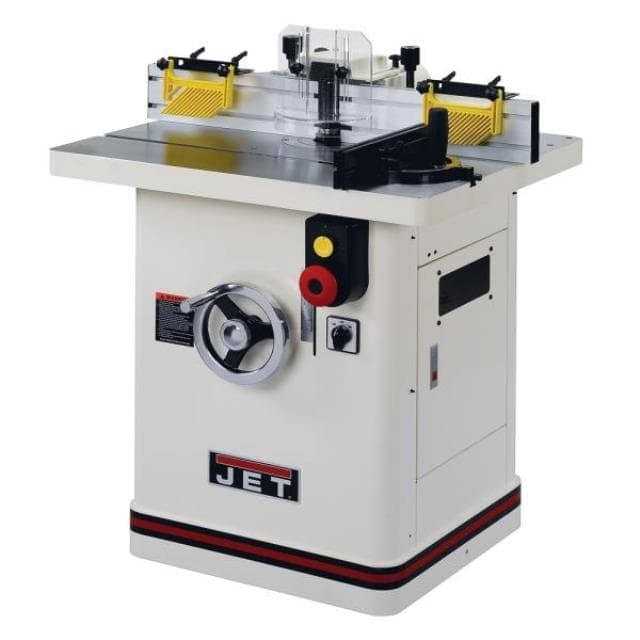 Jet JWS-35X – мощный профессиональный фрезерный станок с массивным чугунным столом, предназначенный для работы в частной столярной мастерской или на производстве. Изначально адаптирован для установки устройства автоподачи, крепежные отверстия предусмотрены в столе. Конструкция со съёмным шпинделем значительно расширяет сферу применения. В стандартную комплектацию входят два цанговых зажима для концевых фрез с хвостовиками 8 и 12 мм, в качестве опций доступны на 1\2 и 1\4 дюйма.Фрезерный упор имеет усовершенствованную конструкцию с увеличенными накладками из алюминиевого профиля. Для регулировки его сдвигают целиком, ослабив два фиксатора. Винтовой механизм с миллиметровой шкалой позволяет отдельно настраивать положение задней накладки (величиной выступа регулируют глубину съёма). В качестве верхних прижимов заготовки используются пластиковые «гребёнки», в том числе страхующие от обратного выброса. В рабочем столе предусмотрен Т-образный паз для установки подвижного упора, он входит в штатную комплектацию. Дополнительно можно приобрести подвижный чугунный стол с увеличенным упором, который служит упрощенной альтернативой каретке и способен её заменить при небольших объёмах работ