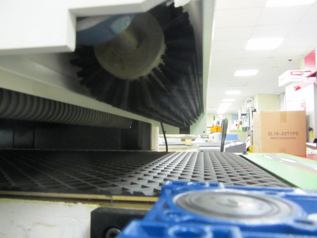 ЩЕТКА ДЛЯ ОЧИСТКИ ЗАГОТОВКИ НА ВЫХОДЕ На выходе для очистки заготовки предусмотрена щетка. Так же сверху предусмотрен аспирационный патрубок для очистки щетки от древесных частиц. |