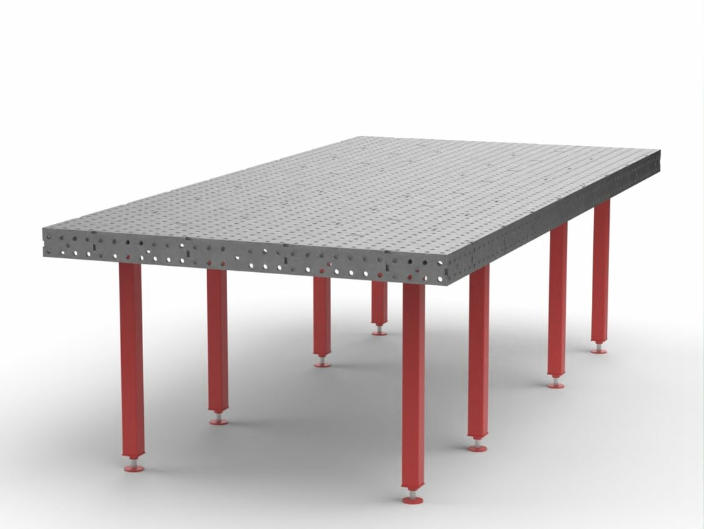 Сварочно-сборочный стол от Keepler-Stan предназначен для позиционирования и фиксации деталей и узлов металлических конструкций, а также для позиционирования роботизированной сварки. Усиленная ребрами жесткости столешница имеет отверстия диаметром 16мм и координатную сетку с шагом 50 мм для использования ее в качестве шаблона а так же нанесена линейка по длинной стороне стола для удобства позиционирования деталей. Толщина и высота ребер жесткости соответствует толщине столешницы и заявленной высоте боковой стенки. Допустимое отклонение по плоскости столешницы 1мм на 1 пог.м. стола. Высота стола 900мм, с возможностью регулировки 50 мм.