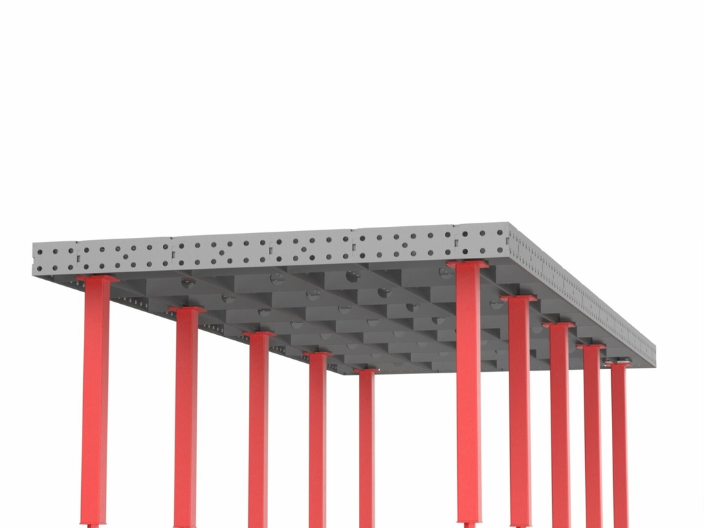 Сварочно-сборочный стол от Keepler-Stan предназначен для позиционирования и фиксации деталей и узлов металлических конструкций, а также для позиционирования роботизированной сварки. Усиленная ребрами жесткости столешница имеет отверстия диаметром 16мм и координатную сетку с шагом 50 мм для использования ее в качестве шаблона а так же нанесена линейка по длинной стороне стола для удобства позиционирования деталей. Толщина и высота ребер жесткости соответствует толщине столешницы и заявленной высоте боковой стенки. Допустимое отклонение по плоскости столешницы 1мм на 1 пог.м. стола. Высота стола 900мм, с возможностью регулировки 50 мм.
