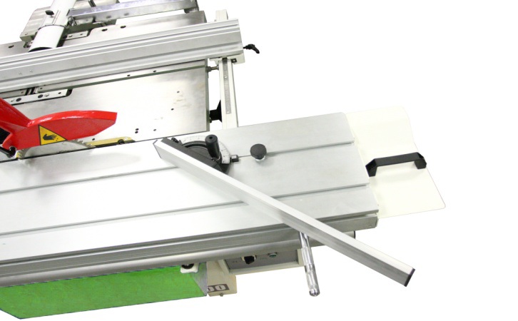 - Благодаря наличию подвижной алюминиевой каретки и подрезного узла станок может использоваться как полноценный форматно-раскроечный станок для качественного (без сколов, с точной геометрией) раскроя плитных материалов, облицованных пластиком, ламинированных и др.