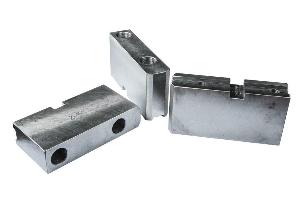 Комплект сырых накладных кулачков под токарный патрон Ø250 мм, представляет собой вариант обязательной оснастки для токарного оборудования. Комплектом оснащаются токарные станки моделей серии ZX, GH-20xxZH, выпускаемые компанией JET. Кулачки изготавливаются из сырой, незакаленной стали, позволяющей в дальнейшем растачивать рабочие поверхности. Накладные сырые кулачки устанавливаются на основные кулачки путем зубчатого соединения для выполнения токарных работа на тонкостенных деталях и заготовках, со сложной конфигурацией рабочей поверхности.
