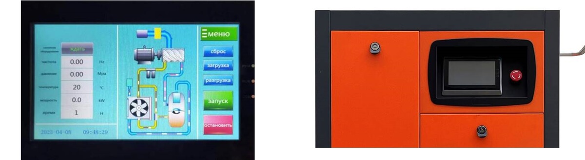 Винтовой компрессор оснащен системой управления с сенсорным дисплеем, позволяющим в автоматическом режиме контролировать работу оборудования в режиме реального времени. Отличительной особенностью является полностью русифицированная программа управления. |